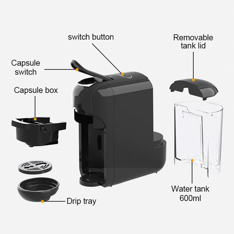 Compact Capsule coffee maker and comes with a removable 600 ml, BPA free tank